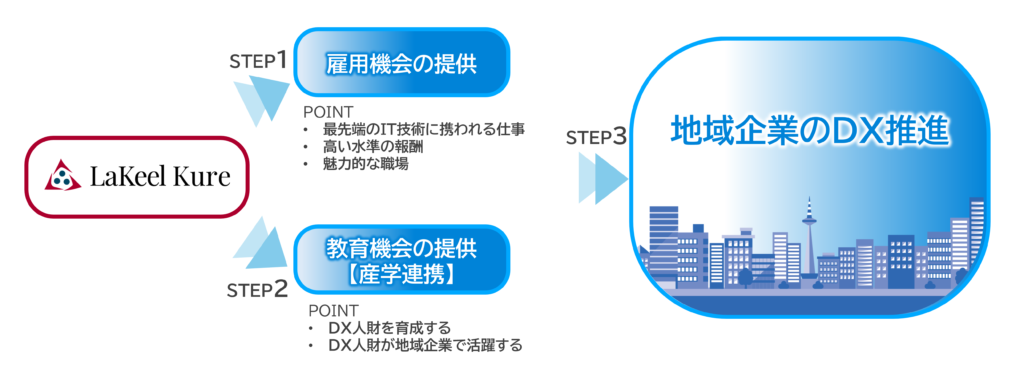 具体的には、①優秀なDX人材を育成すること②東京と遜色ない最先端のシステム開発に携われる環境をつくること③安心して挑戦できる魅力ある職場を提供することを念頭に、LaKeel DXをはじめとする自社製品のシステム開発を行います。4月末からラキール呉での新たな人材の採用をスタートしており、地域や自治体と協力し、地方創生を目指すとしています。なお、呉オフィスとラキール呉は機能を一体化し、運営していくそうです。
